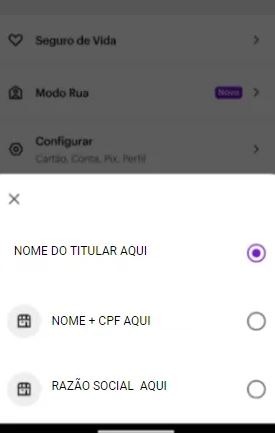 Exemplo de login no app Nubank usando o CPF, quando este CPF está atrelado a mais de uma conta (conta PF e PJ por exemplo)