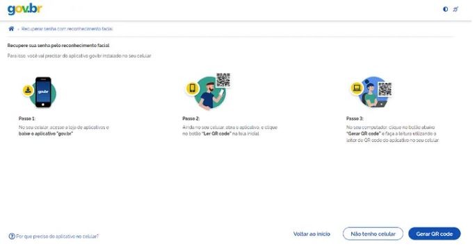 Recuperação de conta do Gov.br através de leitura de QR code + reconhecimento facial