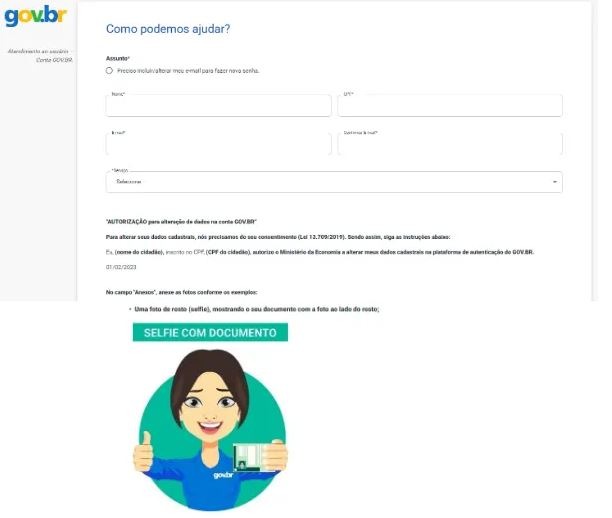 Recuperação de conta do Gov.br através de formulário de solicitação